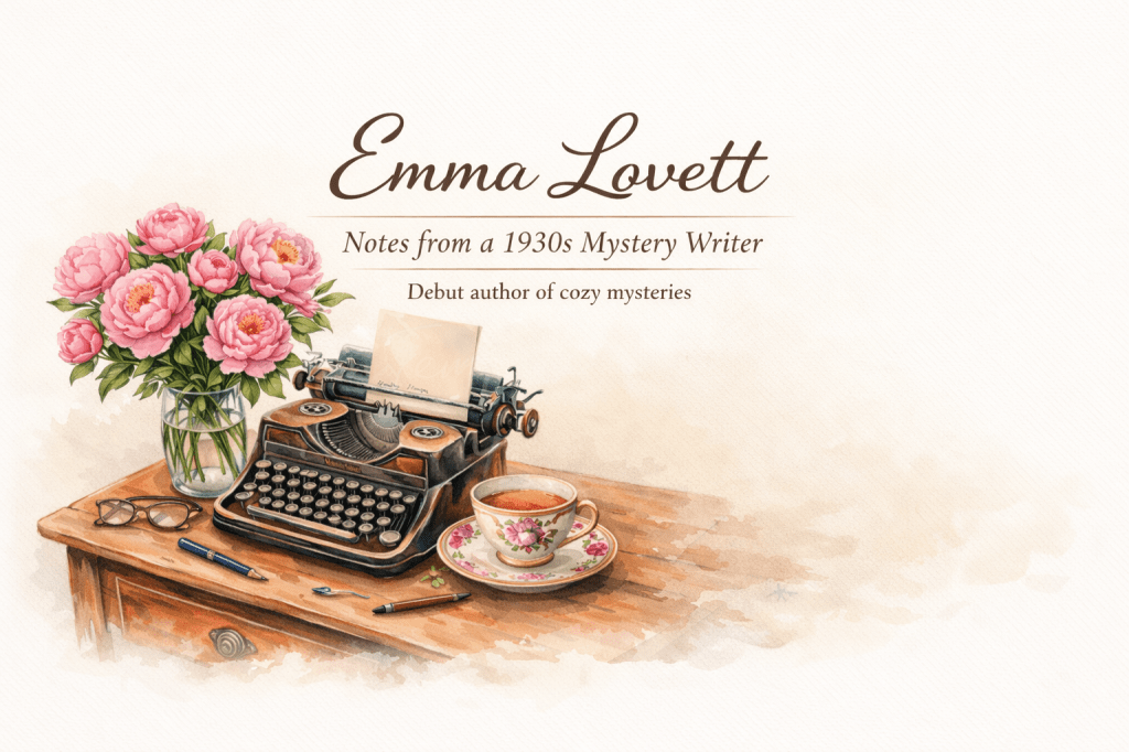I’m Emma Lovett, a debut author writing cozy mysteries set in 1930s England — a world of village gossip, ticking clocks, warm teacups and the kind of clues you only notice when you’re paying very close attention.